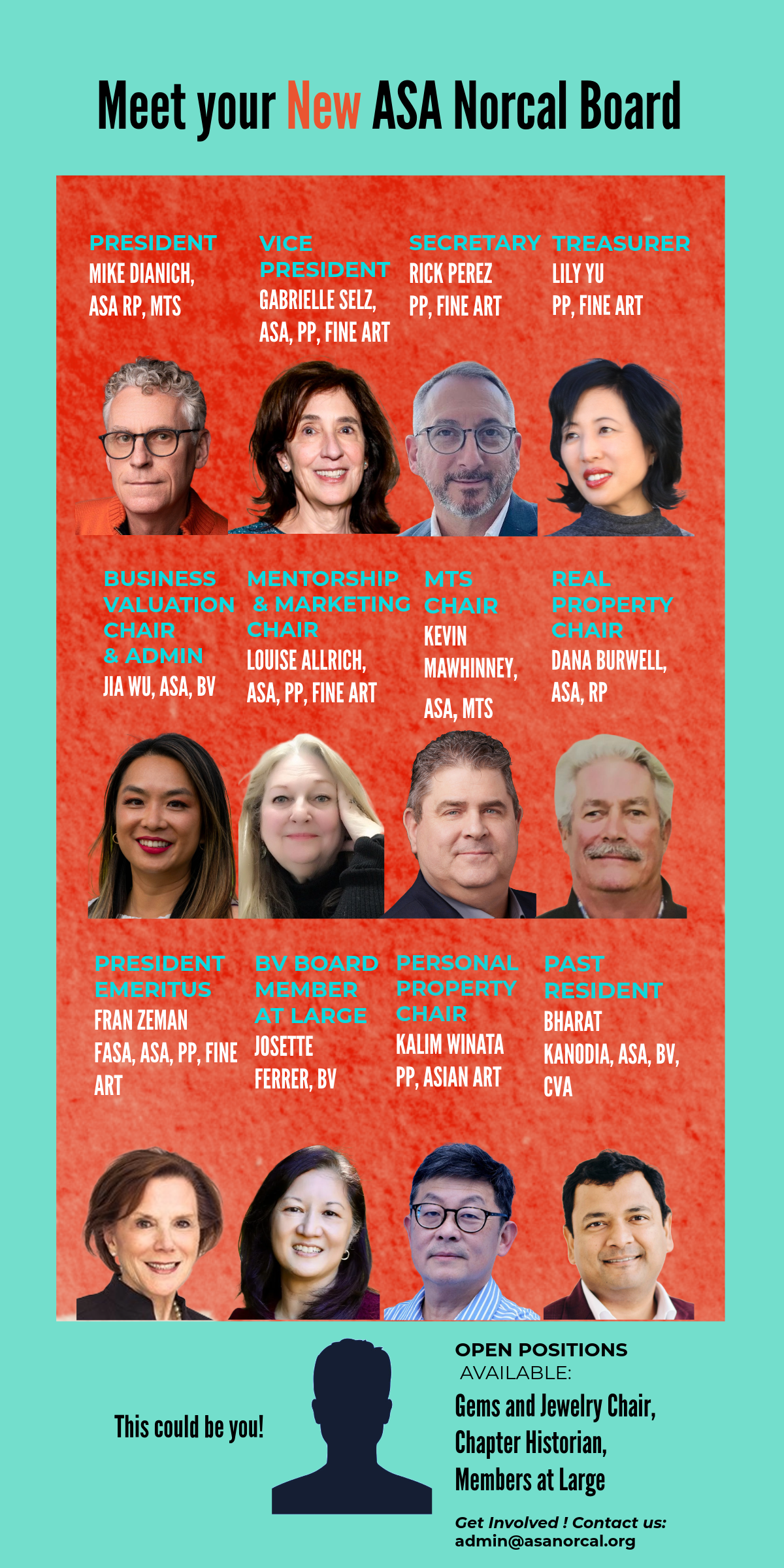 Jia Wu, ASA is the Founder and Managing Partner of Monument Valuations, a Business Valuations Consultant with John Staurulakis, Inc., and the Chapter Administrator for ASA NorCal. In addition to her business valuation expertise, Jia oversees the chapter’s digital operations—managing its web platform, supporting virtual events, and driving community engagement through streamlined online experiences. Her efforts have been instrumental in expanding ASA NorCal’s digital presence and strengthening its member outreach. For ASA NorCal inquiries, contact: admin@asanorcal.org