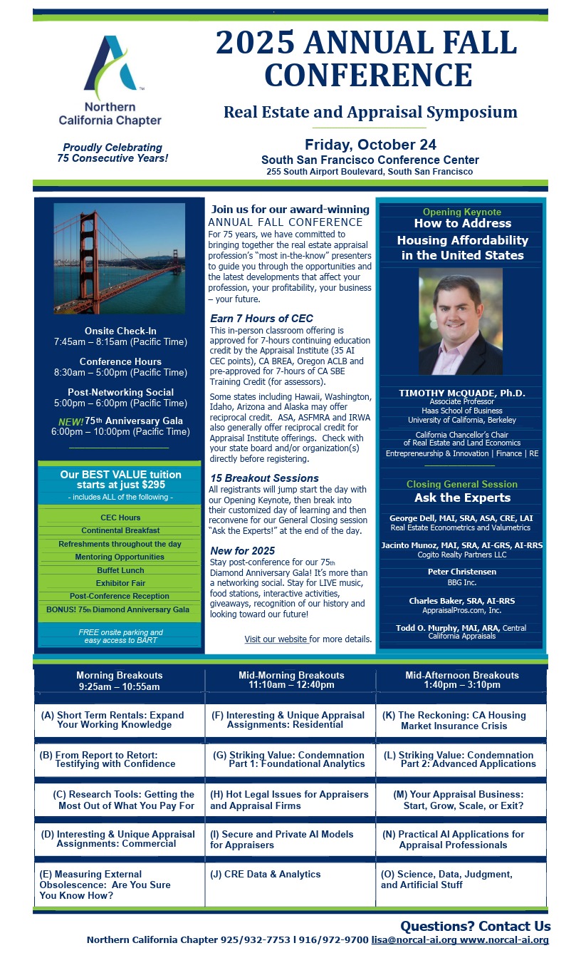 Oct 24, 2025 Annual Fall Conference: Real Estate and Appraisal Symposium